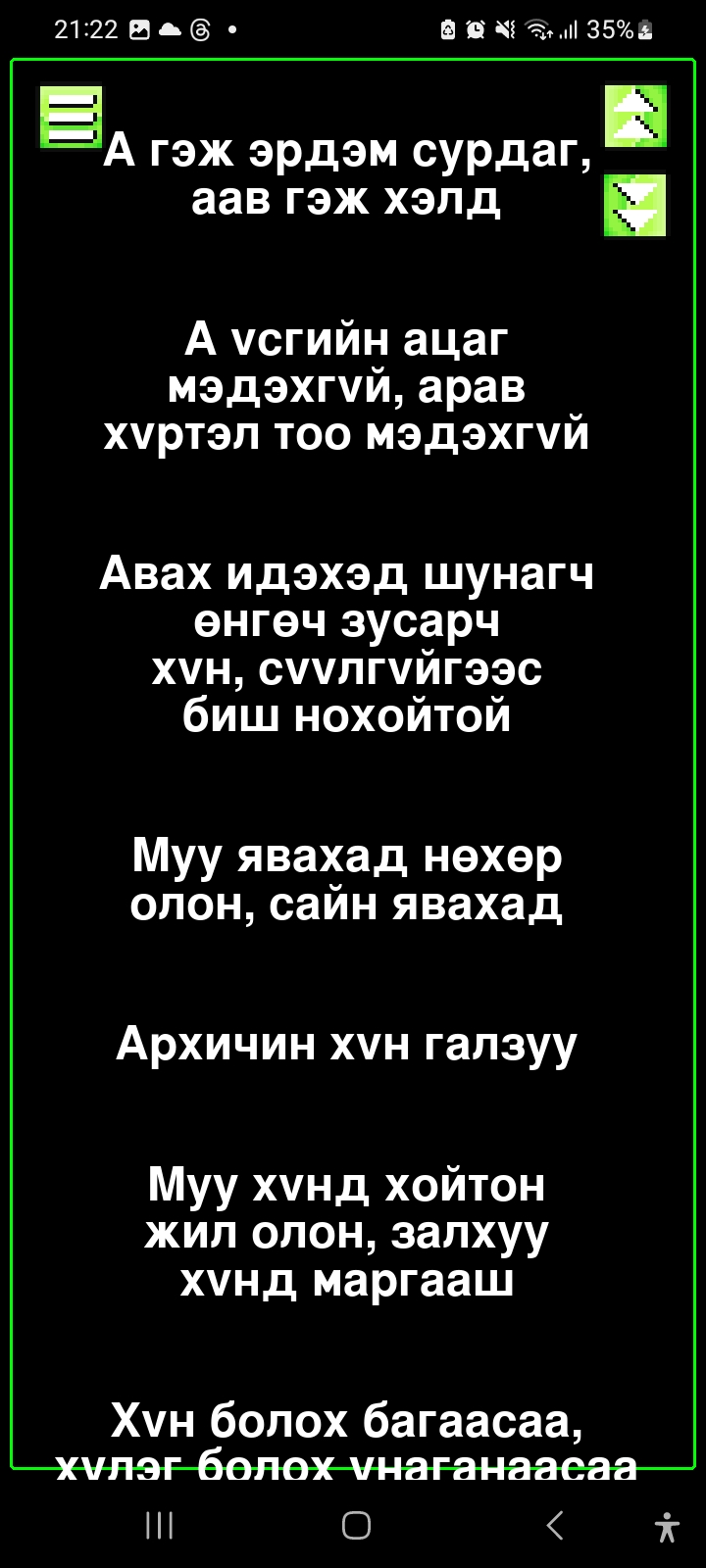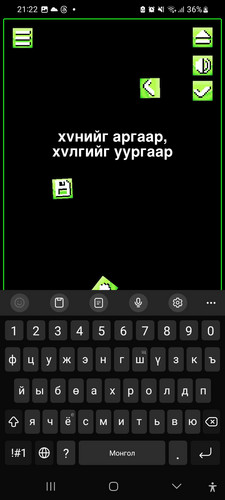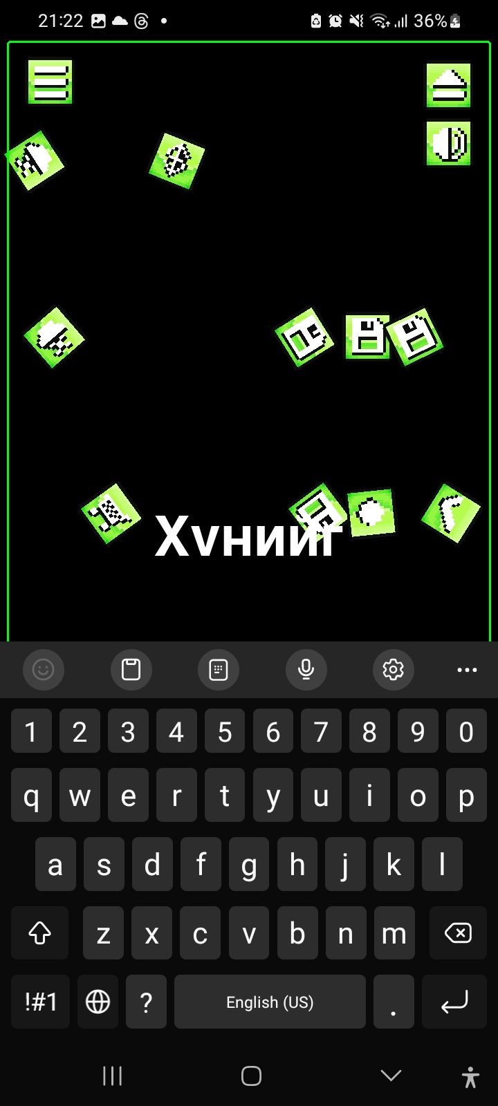 Таны бичсэн үсэг бүр тухайн үгнээс нэг нэгээрээ хасагдаж, дэлгэцийн дээд хэсэгт гарч ирэн нийт бичсэн үгийг тань харуулна.